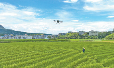 湖南郴州市桂阳县塘市镇杂交水稻制种基地,农技员操控植保无东谈主机为杂交水稻制种授粉。比较传统的东谈主工用竹竿、绳索等“赶花”授粉的面容,无东谈主机制种授粉效果更高、资本更低、质地更好。周秀鱼春摄(影像中国)