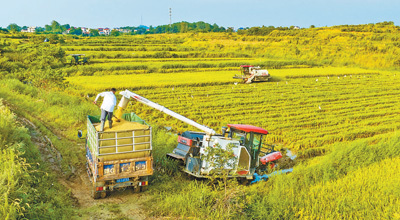 白露时节,安徽安庆市岳西县西营村,水稻田金黄一派,丰充在望。连年来,当地握续加强高圭表农田缔造,促进水稻坐褥节本增效。吴均奇摄(影像中国)